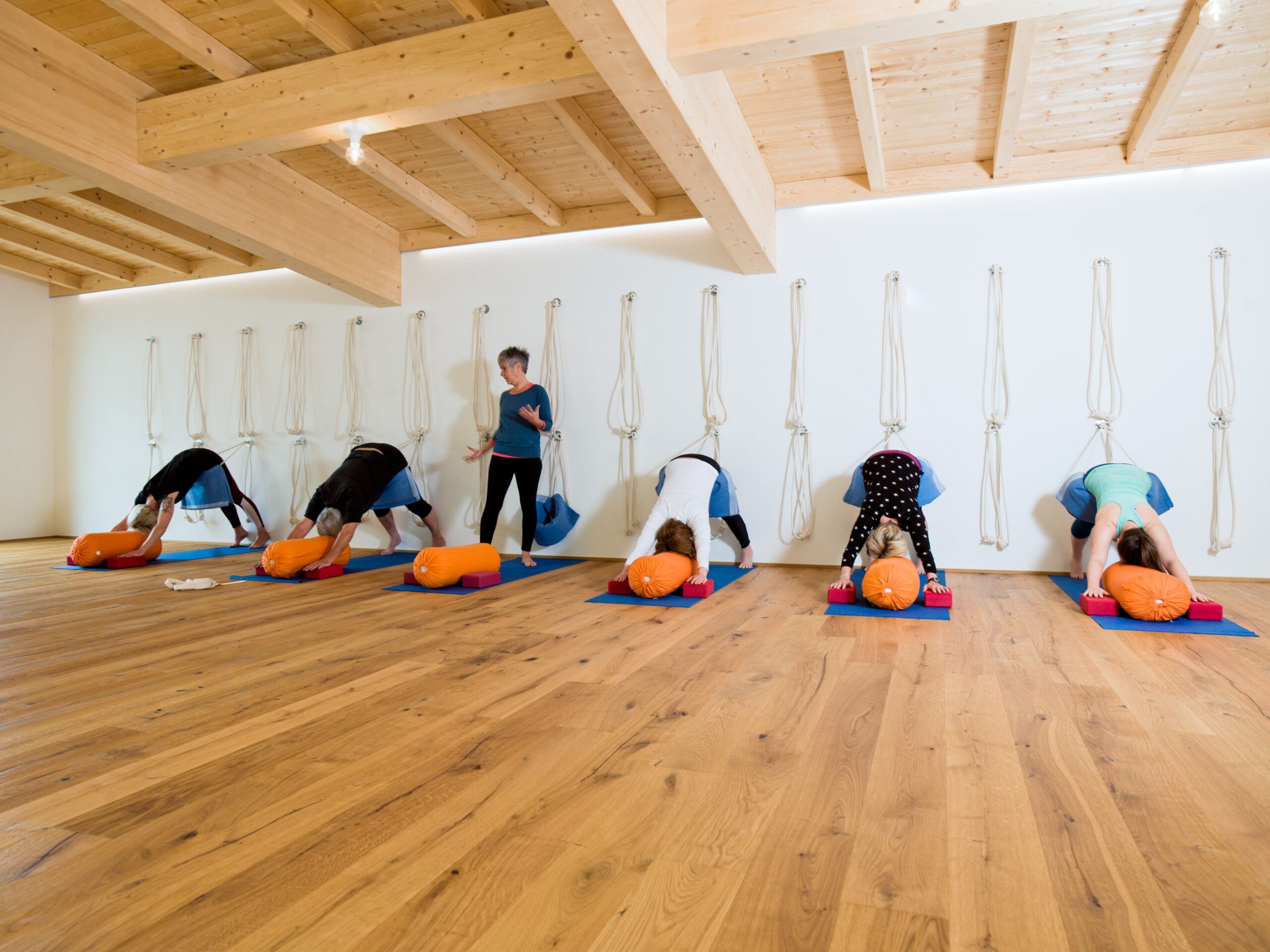 In speziellen, einfachen Übungen, die durch den Einsatz von Hilfsmitteln durchgeführt und länger gehalten werden, lernst du deinen Körper zu entspannen.
